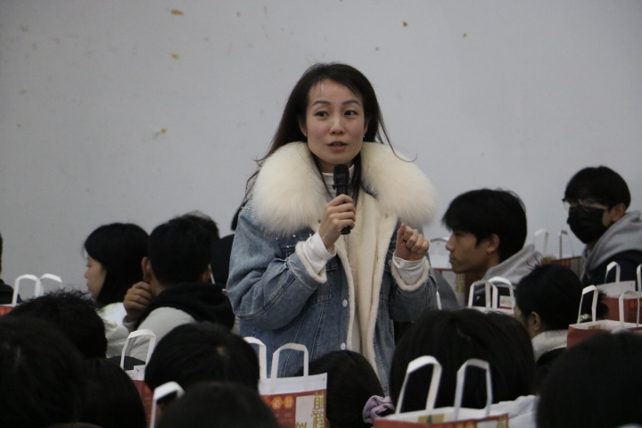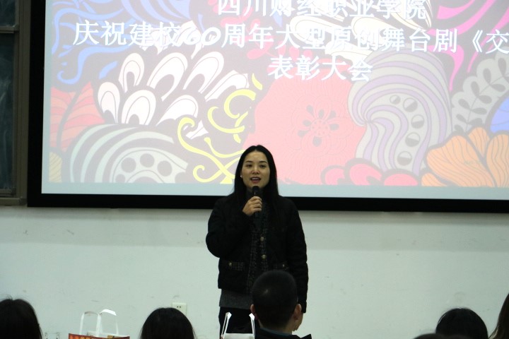 团委书记高菁用“感谢”和“传承”两个词语表达了自己的感想。首先,高书记对学院领导、老师、导演组和演职人员的辛勤付出表示了衷心的感谢,在导演组和300多名学生演职人员的共同努力下,大家为学校60周年校庆带来了一场令人震撼的完美舞台剧呈现。接着,高书记表示,虽然“交子”的校庆舞台剧表演已经结束,但“交子”文化和精神的传承和发展还在继续,希望有更多的同学能参与到后续“交子”短剧的传承中,打造川财特色文化品牌。