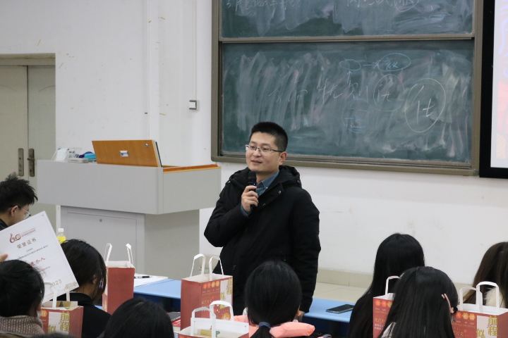 在表彰大会上,党政办马宁副主任和各位演职人员一起分享了原创舞台剧《交子》从建立初期时选拔人员的不易,到后来排练途中所遇到的种种困难,如演员的时间协调、工作人员的安排、临近演出时的突发情况处理。他对各位演职人员送上了美好的祝愿,希望同学们在学习和生活上逢考必过、一帆风顺。