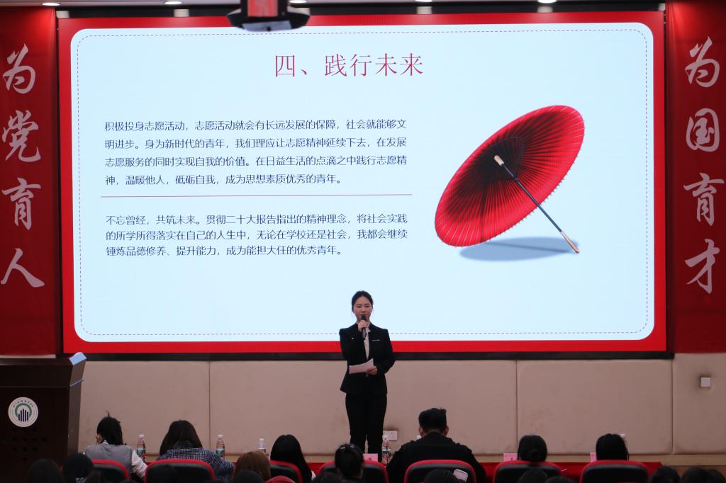 本次展演共有10名同学参与汇报。每位同学根据自己在2024年寒假展开的社会实践活动,依次上台讲述个人寒假实践的活动历程以及收获成果。结合党的二十大报告精神,以PPT和实践视频结合的形式进行时长为5到7分钟的成果展演。