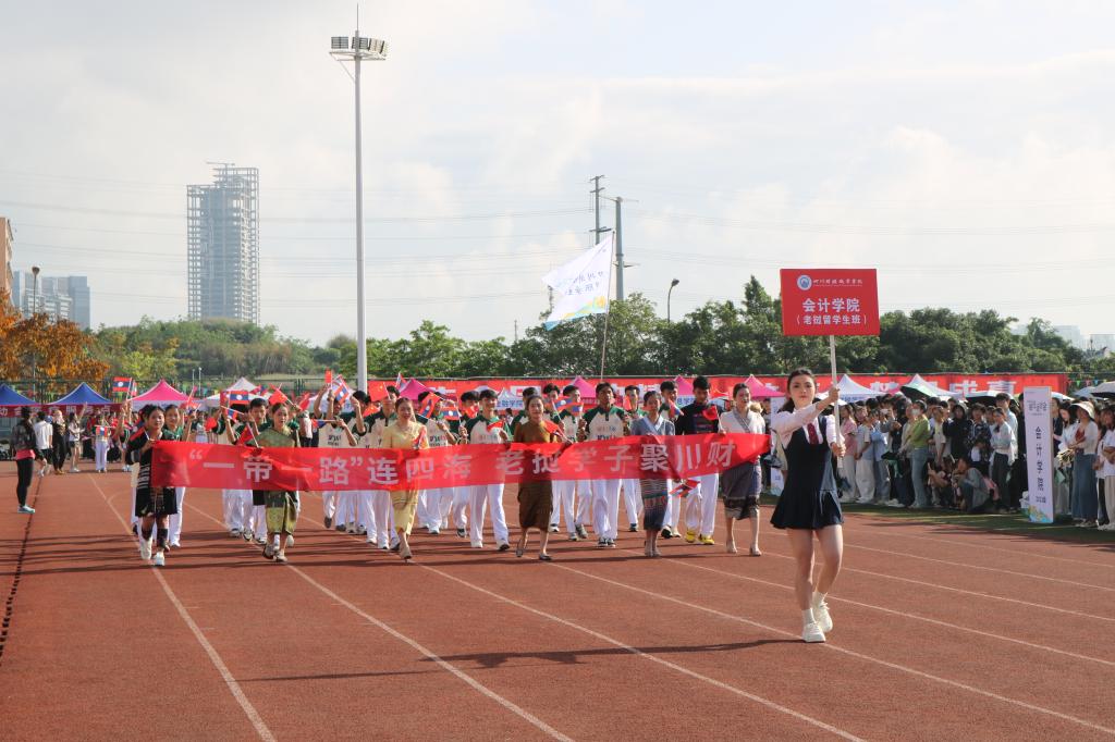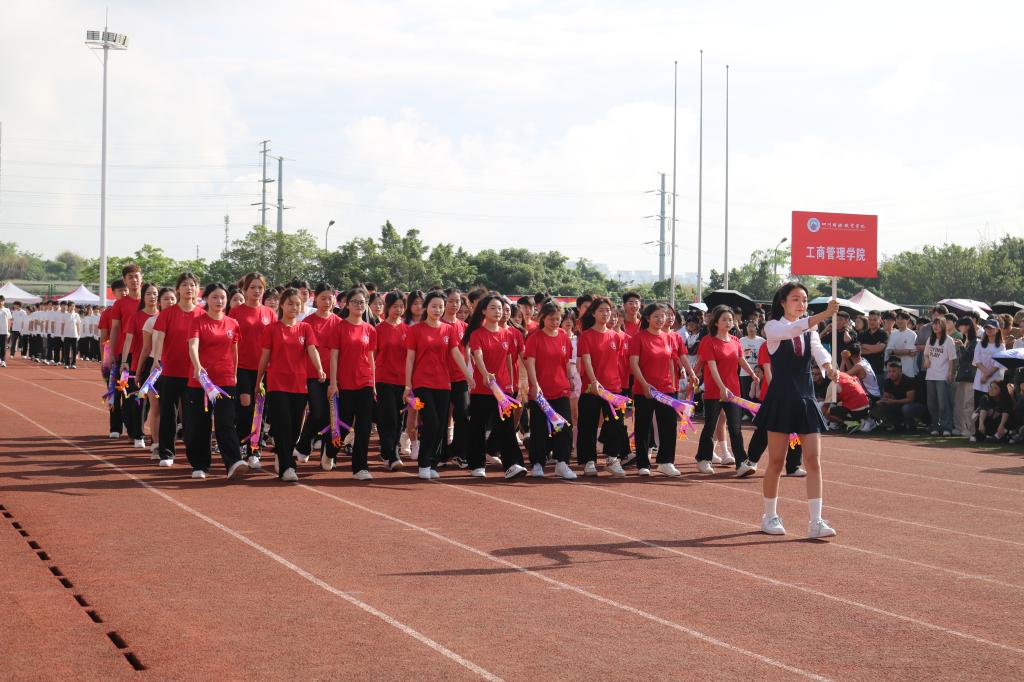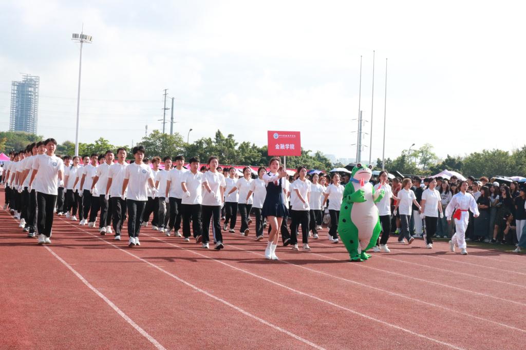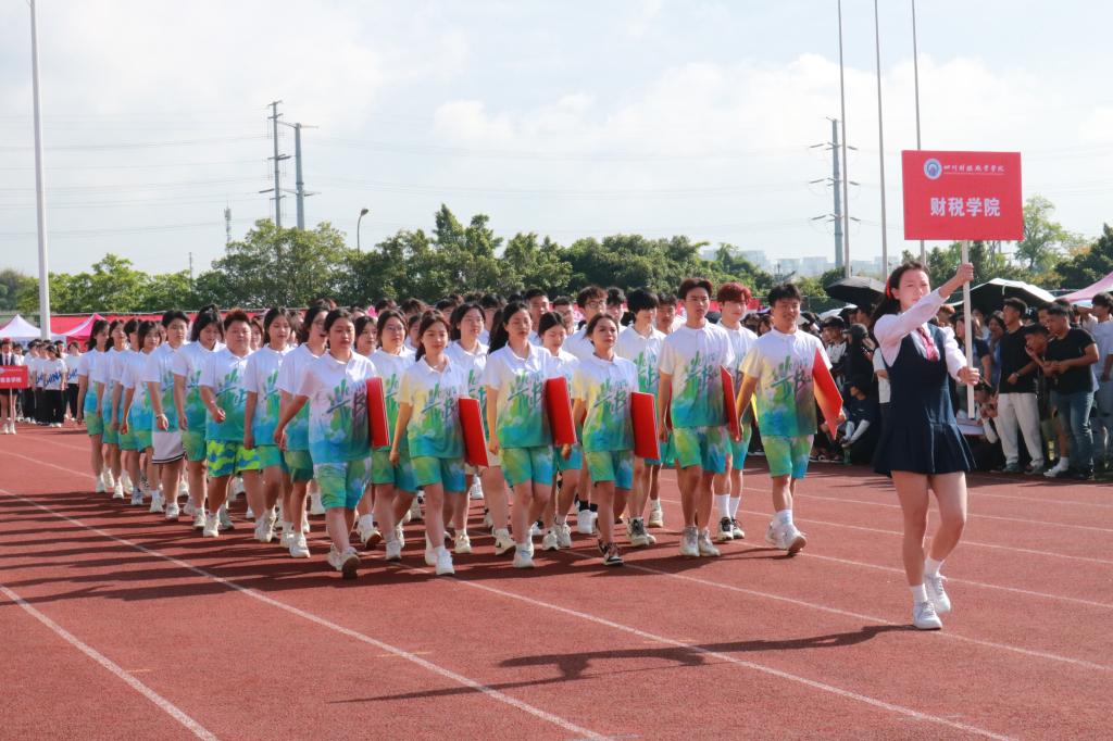 伴随激昂乐曲,各个学院代表方队依次入场,各具特色的表演呈现出一番精彩的视觉盛宴,将运动会气氛推向高潮!他们步伐稳健、口号嘹亮,无不彰显财院学子的青春活力!