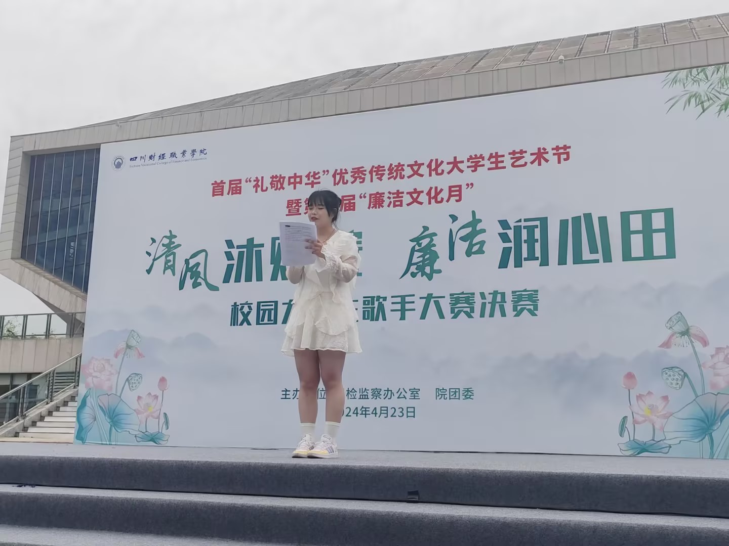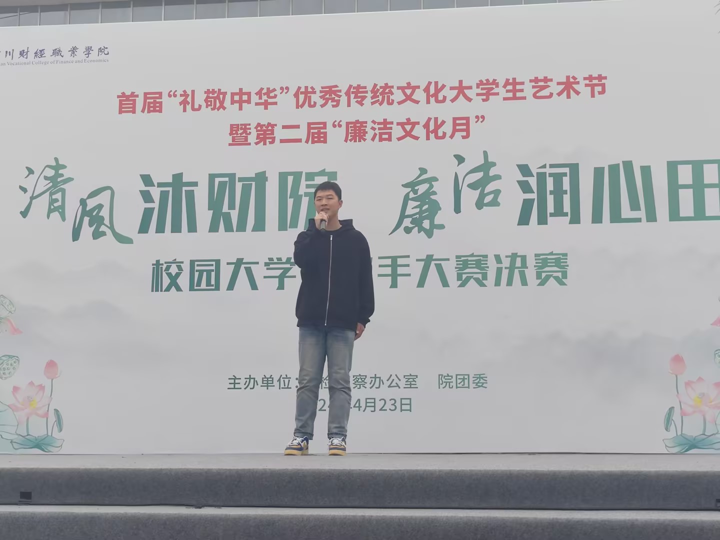 为展现大学生对优秀传统文化的热爱与传承,同时激发青春活力,促进校园文化的繁荣与发展,我院纪检监察办公室和校团委联合举办的首届“礼敬中华”传统文化大学生艺术节,暨“校园廉声”歌手大赛总决赛于4月22日在学院悦动广场圆满举办,学院党委副书记、纪委书记余俊任出席,八位专业评委老师及800余名学生参加大赛。