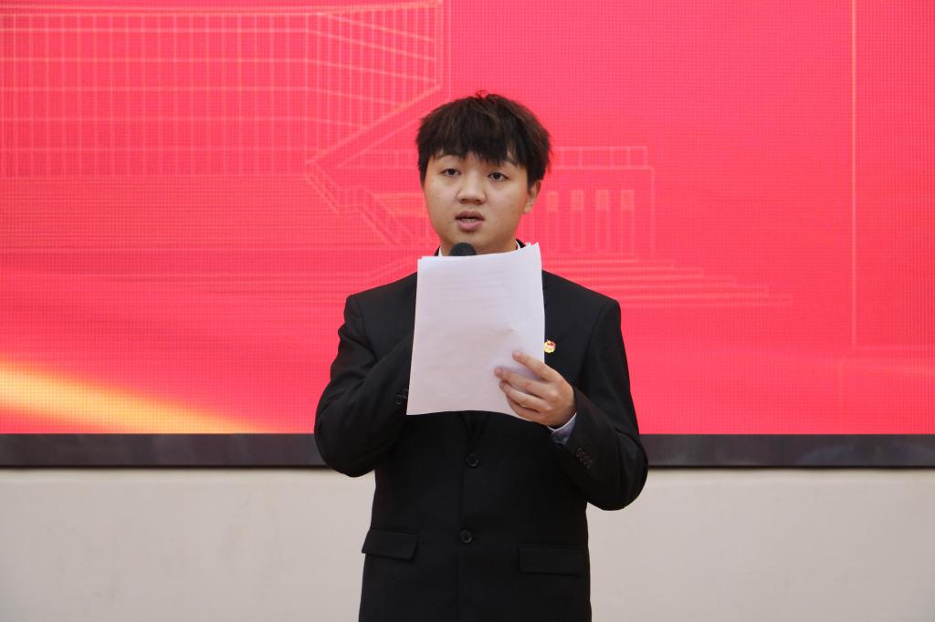 第七期青马班学员代表杨焜同学发言。他表示在青马班未来的学习和实践中,他将不断精进专业技能,全面提升综合素质,努力提升自己,争做新时代好青年,以实际行动挥洒青春的汗水,为国家的发展和民族的振兴贡献青春力量,让青春在奋斗中绽放光彩。