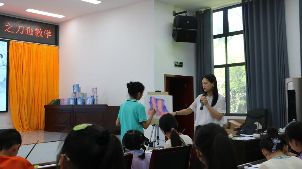 在中华文化的瑰宝之中,刀画艺术如同一颗熠熠生辉的宝石。为了传承并发展这一非物质文化遗产,实践团成员何莹莹以宣传发扬非遗刀画为核心,向小朋友们介绍了刀画的流派、源远流长的历史、独树一帜的特点以及绘画的基本技法。在她的引导下,小朋友们逐步掌握了从调配色彩、勾勒线条至填充颜色、精细雕刻的整个创作过程。此次非遗课堂融合了现场教学与实践操作,激发了孩子们的学习热情,让他们亲手感受到了刀画艺术的无限魅力。通过这样的互动体验,不仅激发了孩子们对刀画的兴趣,还加深了他们对这一艺术形式的理解和喜爱。此次的活动不仅是一次艺术的实践,更是文化传承的生动体现。