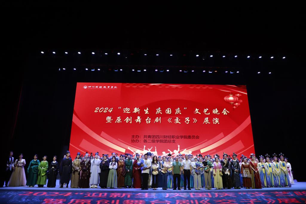 为喜迎2024级新生,营造良好校园文化氛围,庆祝中华人民共和国成立75周年,我校于9月24日晚18:40在阳光体育馆隆重举办2024“迎新生 庆国庆”文艺晚会暨原创舞台剧《交子》展演活动。