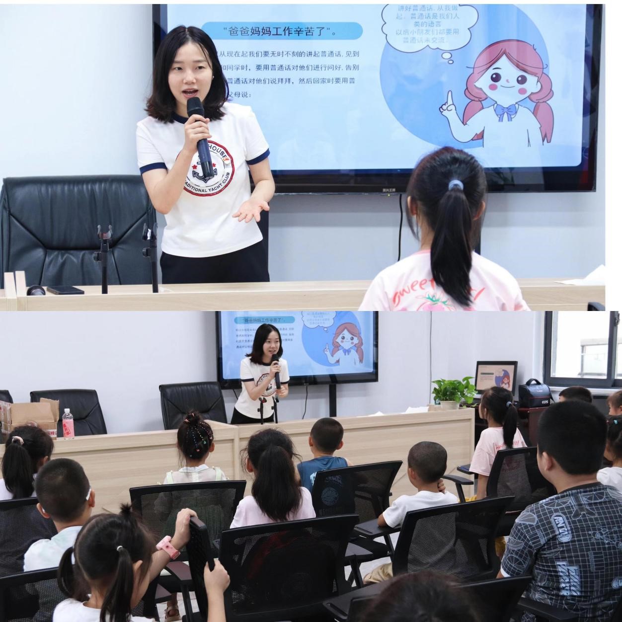 7月11日,青春实践团继续赴中山路社区童伴之家开展普通话推广活动。王艺霏老师在与孩子们的交谈互动中,发现他们的发音问题并进行教育指导,实践团成员们则开展了普通话知识抢答赛,孩子们踊跃参与,现场气氛热烈,欢声笑语不断。最后,青春实践团与孩子们共同朗诵古诗《元日》,一起感受普通话的语言魅力。