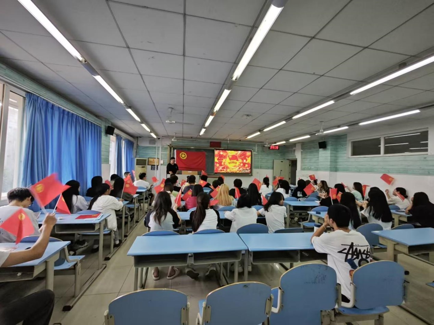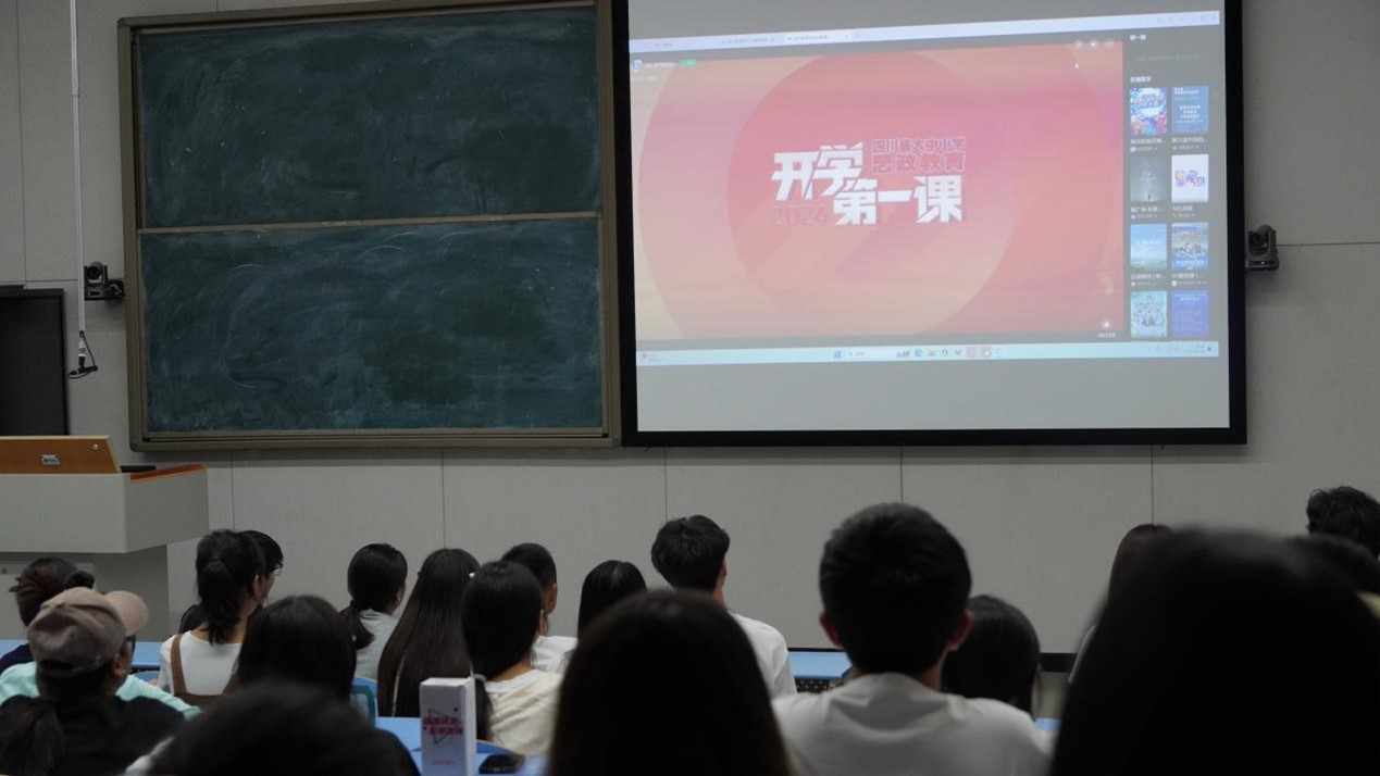 5、9月8日,会计学院党总支宣传委员、团总支书记罗兰杰老师在至诚楼B211教室组织学生党员、入党积极分子、团学干部集中观看了2024年四川省大中小学思政教育《开学第一课》。