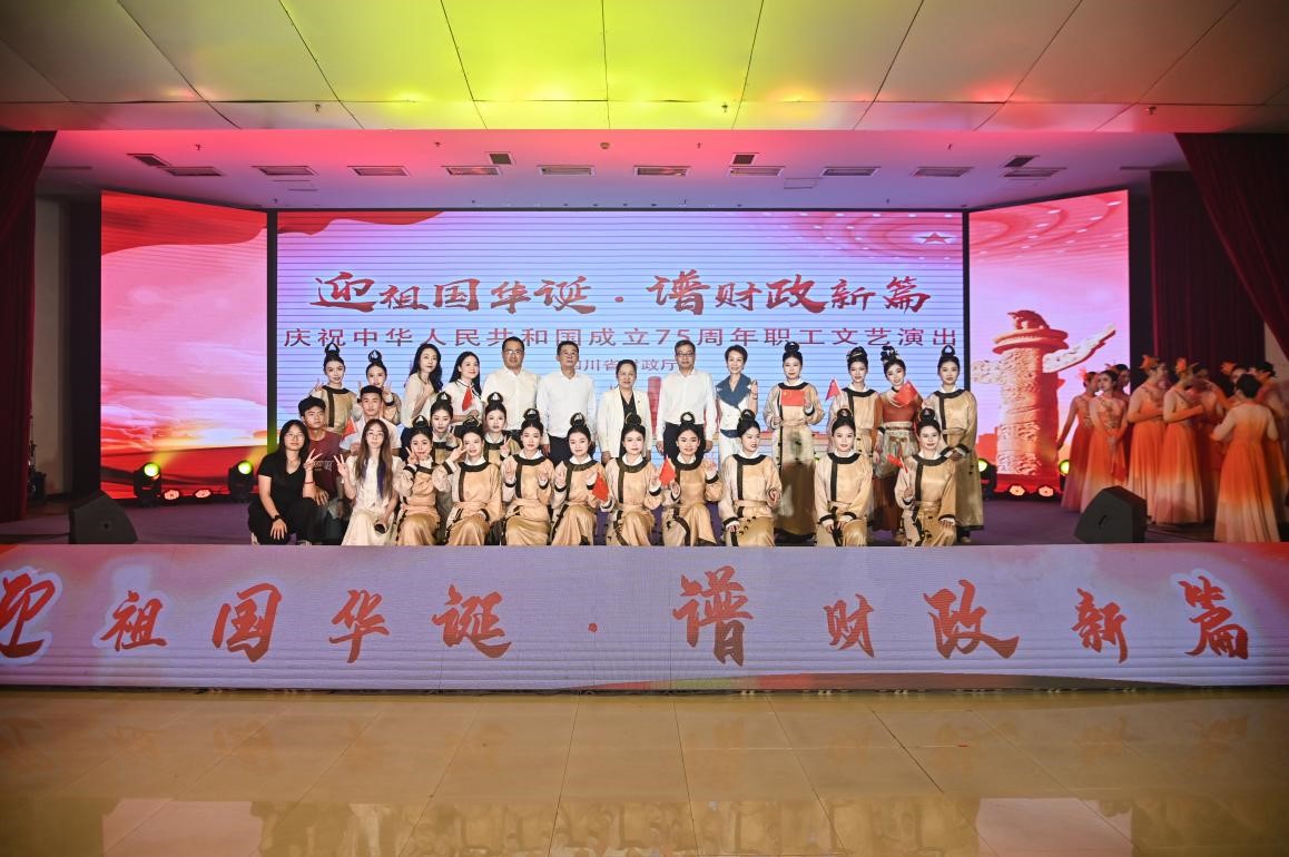为庆祝中华人民共和国成立75周年,弘扬伟大爱国主义精神,四川省财政厅于9月29日在厅机关2号楼12楼会议室举办“迎祖国华诞 谱财政新篇”文艺演出活动,校团委组织“交子”舞蹈队20余名师生表演《算盘舞·方圆》舞蹈作品,积极展现我院师生精神风貌,庆祝祖国华诞。学院党委书记张华、院长符刚,党委副书记、纪委书余俊任,党委委员、副院长肖兆飞观看演出活动。