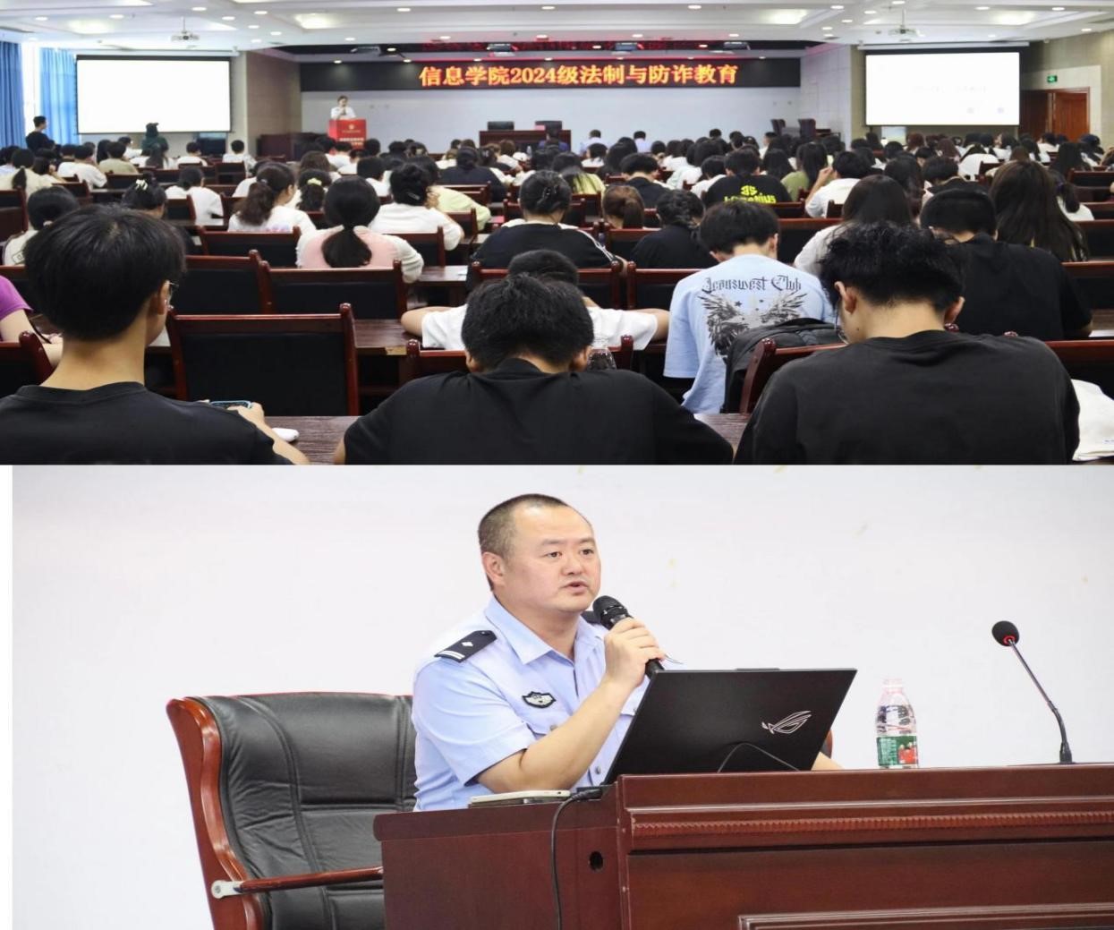 4、9月11日,信息学院在明德楼308开展了2024级法制和反诈教育专题讲座,信息学院党总支书记杨晓荣、武装保卫部部长刘丹、龙泉驿区东安派出所副所长董明、警官肖文科和龚雪彬出席本次教育专题讲座。