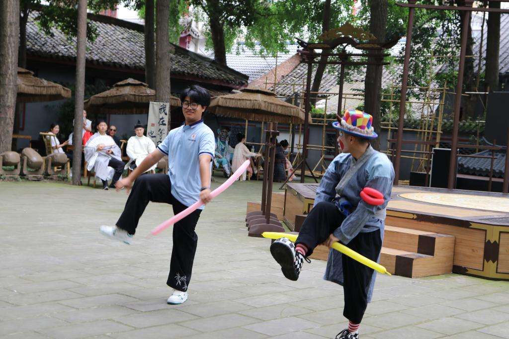 随后,实践团师生来到罨画池,在这里我们看到了不一样的传统文化,汉服表演、川剧变脸,武术等,与古典舞相结合的舞台剧表演让我们目不暇接。这些传统艺术与现代审美的碰撞,不仅展现了中华文化的博大精深,也激发了实践团师生对传统文化和非遗文化的无限热爱与遐想。
