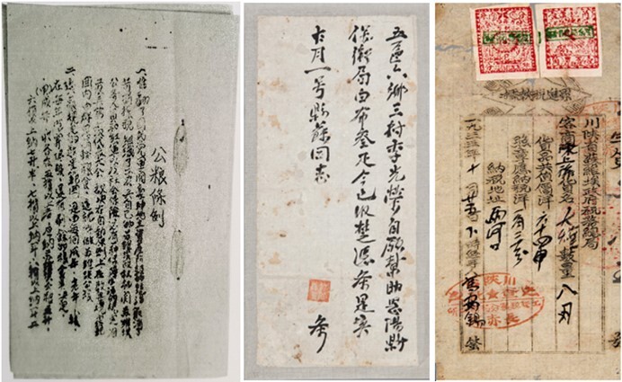 图为川陕革命根据地博物馆保存的川陕苏区所用票据等文物