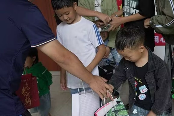 二、分发学习用具,温暖童心