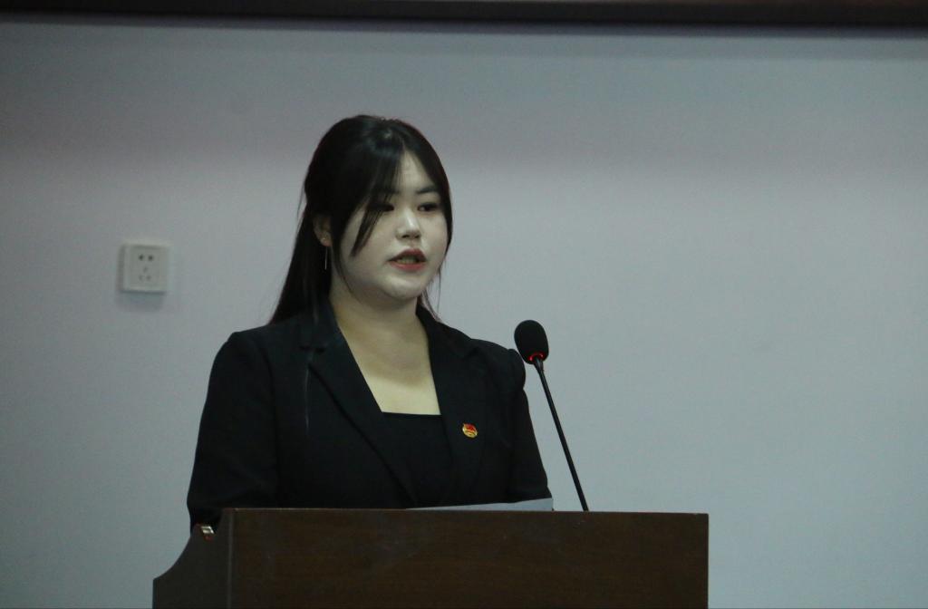 团委书记高菁为大会致辞。高书记充分肯定学校八大机构的指导老师以及第十八届全体学生干部在过去一年的辛勤努力和默默付出,激励老一届的学生干部能够将工作经验无私地传授给新一届学生干部,做好传帮带的职责,鼓励新一届学生干部要传承所在部门优良传统,对待工作踏实肯干、不言放弃、敢于担当,勇于创新,用更强大的力量助力学校的高质量发展。最后,高菁书记对新任职的学生干部们寄予殷切期望,她指出希望他们能够在学业和工作上为其他同学做好模范示范作用,做有理想、敢担当、能吃苦、肯奋斗的新时代好青年。