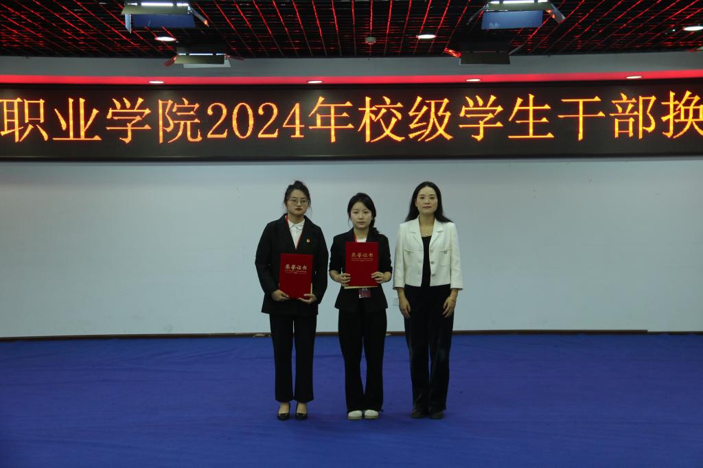 (学生会指导老师朱珠为学生干部颁发聘书)