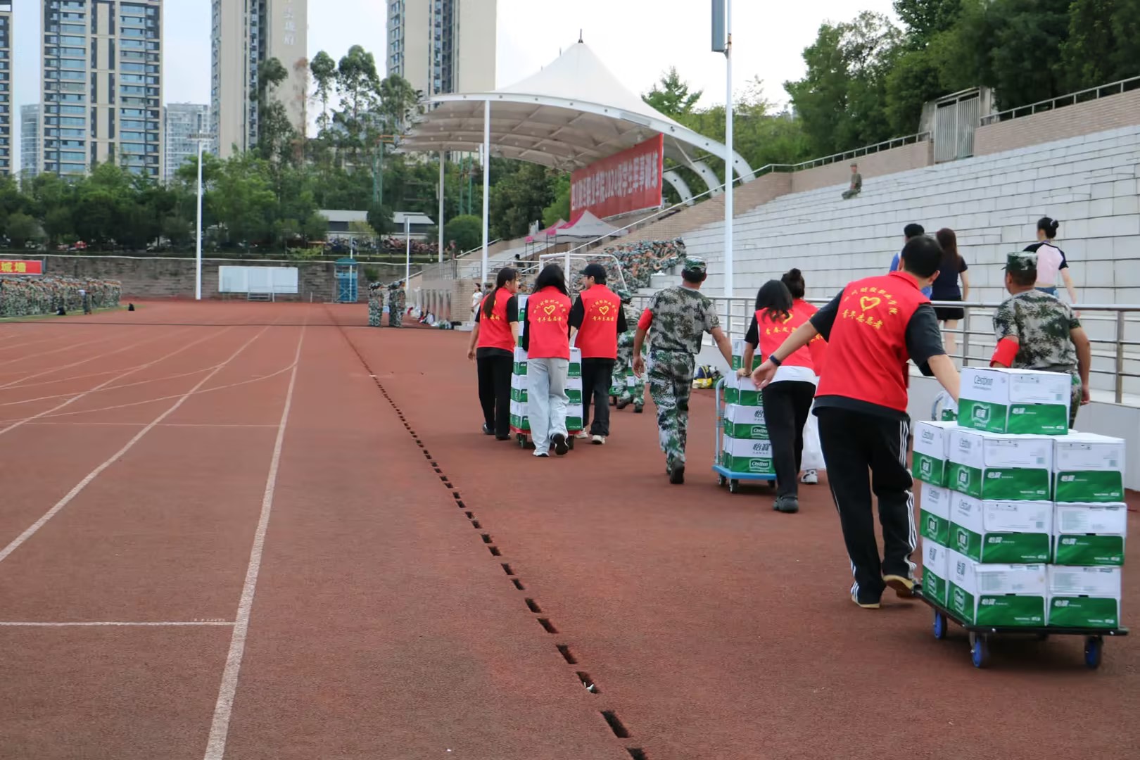 这份来自学院的关怀如同夏日的凉风,吹散了同学们脸上的疲惫与汗水,同学们接过矿泉水,脸上洋溢着感激的笑容。他们纷纷表示,将不负学院的期望和嘱托,以更加饱满的热情和更加坚定的决心投入到军训中去,努力提升自己的综合素质能力水平。