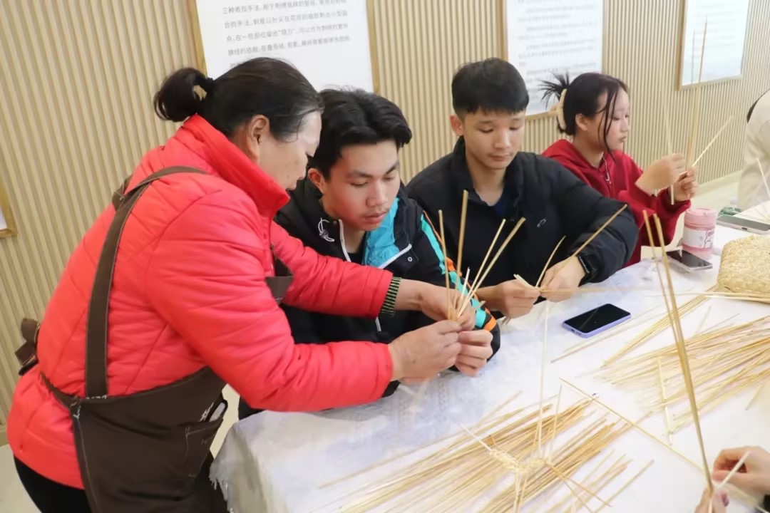 为弘扬中华优秀传统文化,促进文化交流与传播,3月11日下午,校团委特邀龙泉驿区柏合街道蔡思玉等四位老师在非遗文化体验中心授课,带领我校60名老挝留学生感受龙泉非遗草编体验课程。