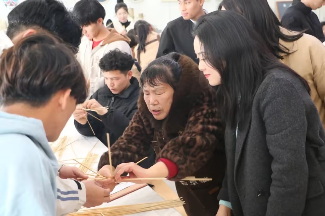 课程伊始,老师为留学生们讲解了草编艺术的基础知识。随后开始了草编基本技巧的现场演示。只见一根根平凡无奇的麦秆在老师的妙手之下,经历挑、压、编、绕等一系列精细操作,逐渐幻化为一件件精美的草编艺术作品。