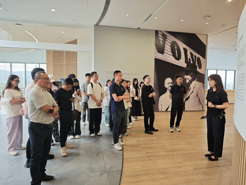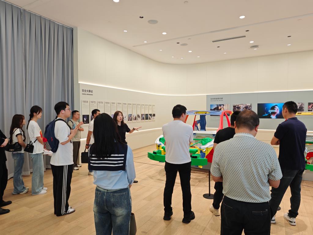 在沃尔沃汽车品牌体验中心,师生们乘坐观光车深入工厂车间,观摩冲压、焊接、质量检测等全流程自动化生产线,切实感受工业智能化在提升生产效率、强化品质管控方面的强大力量。在历史文化展厅,讲解员借助丰富的实物展品、图文资料以及创新的多媒体展示形式,为学员们呈现了沃尔沃从瑞典哥德堡工厂起步,逐步发展成为全球汽车市场重要力量的辉煌历程。通过实物展品与多媒体互动,学员们回顾了沃尔沃的百年发展历史,尤其对其1959年首创三点式安全带并免费开放专利的行业担当印象深刻。在互动体验环节,碰撞模拟实验与虚拟驾驶项目,让学员们直观感受到沃尔沃“安全至上”理念背后的技术支撑。
