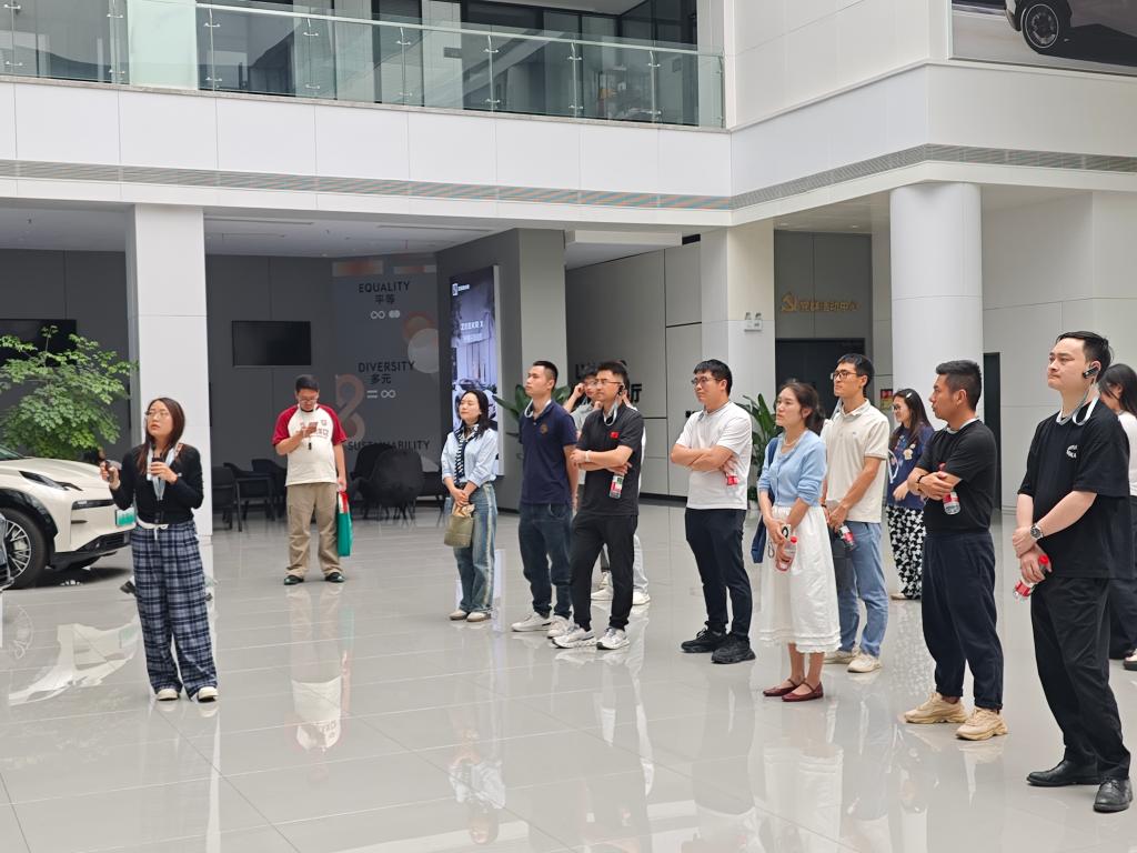 第二站,学员们来到领克汽车成都工厂。讲解员详细介绍了领克“生而全球”的品牌定位,以及其融合吉利与沃尔沃优势资源的协同发展模式。走进工厂车间,从冲压、焊装、涂装到总装,机器人高效协作、全密闭环保涂装工艺、暴雨级淋雨测试等细节,彰显了领克对品质的执着追求和在绿色制造方面的积极实践。在极氪展厅,智能座舱与高阶自动驾驶技术的演示,让学员们切实感受到中国品牌在新能源与智能化赛道的领先实力。