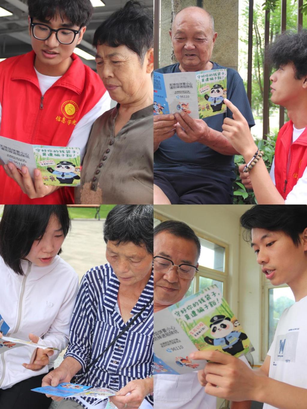 讲解后,“芯”火志愿团成员们深入辖区内的小区,将反诈知识送到老人家门口,切实增强了老年群体的防诈意识和能力。成员们不仅耐心耐心地为居民们讲解宣传手册,帮助老年居民安装具有 AI 识别功能的反诈 APP-国家反诈中心,并演示其来电预警、短信拦截等功能,还教授他们如何使用智能语音助手,解答居民们提出的各类反诈疑问。