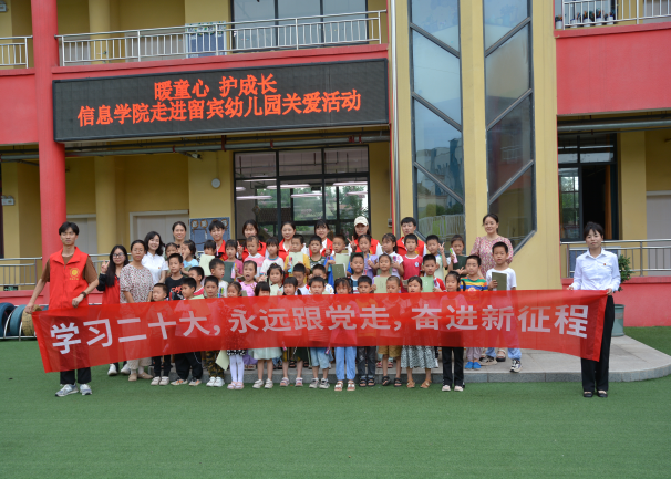 信息学院青春实践团赴宜宾市南溪区留宾小学、留宾幼儿园开展2023年暑期“三下乡”社会实践系列活动之“暖童心 护成长”爱心活动。实践团开展了“学习二十大 永远跟党走 奋进新征程”为主题的宣讲活动,并开展了围绕红色历史的绘本分享活动等一系列红色文化与红色精神活动。此次系列活动的开展为留宾小学和留宾幼儿园的孩子们送来了真挚的祝福和希望。