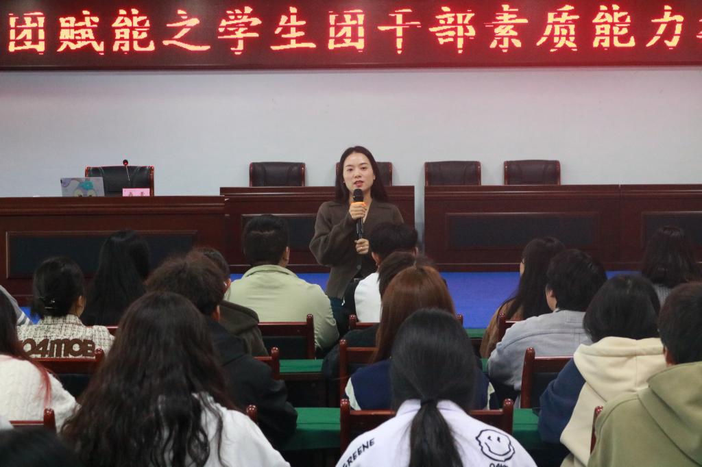为提升学生团干部政治素养和业务工作能力,有效发挥学生干部的先锋模范作用,校团委于11月9日在明德楼308会议室开展了第二期团团赋能之学生团干部素质能力提升培训讲座,团委书记高菁为全院21、22、23级各班级的团支部书记、班长(团支部副书记)进行授课。