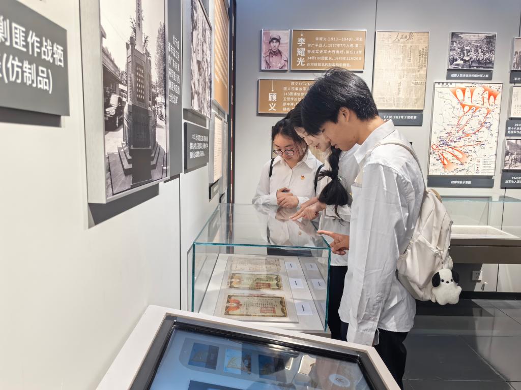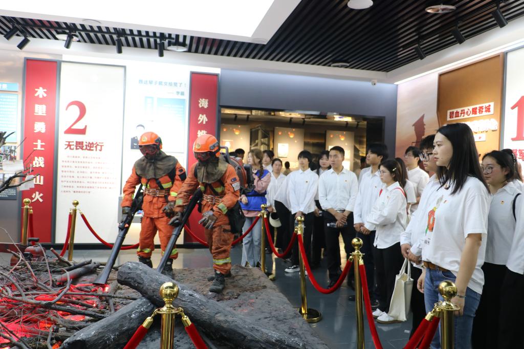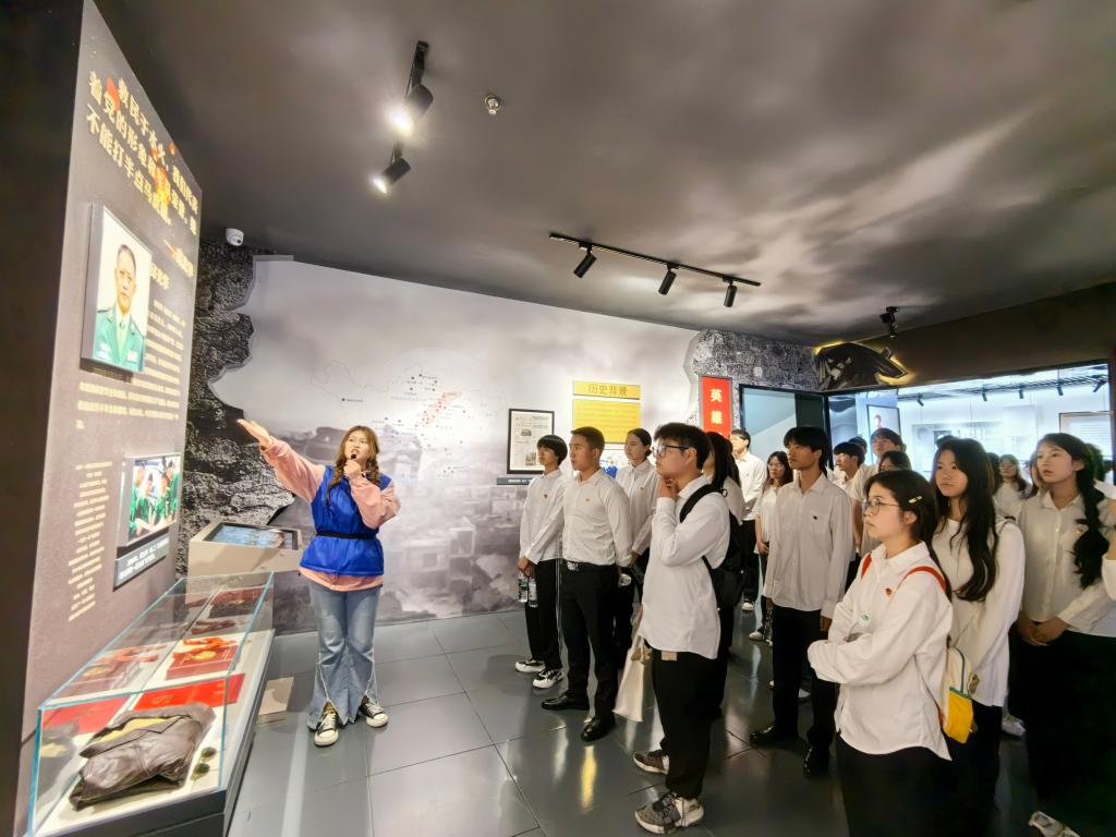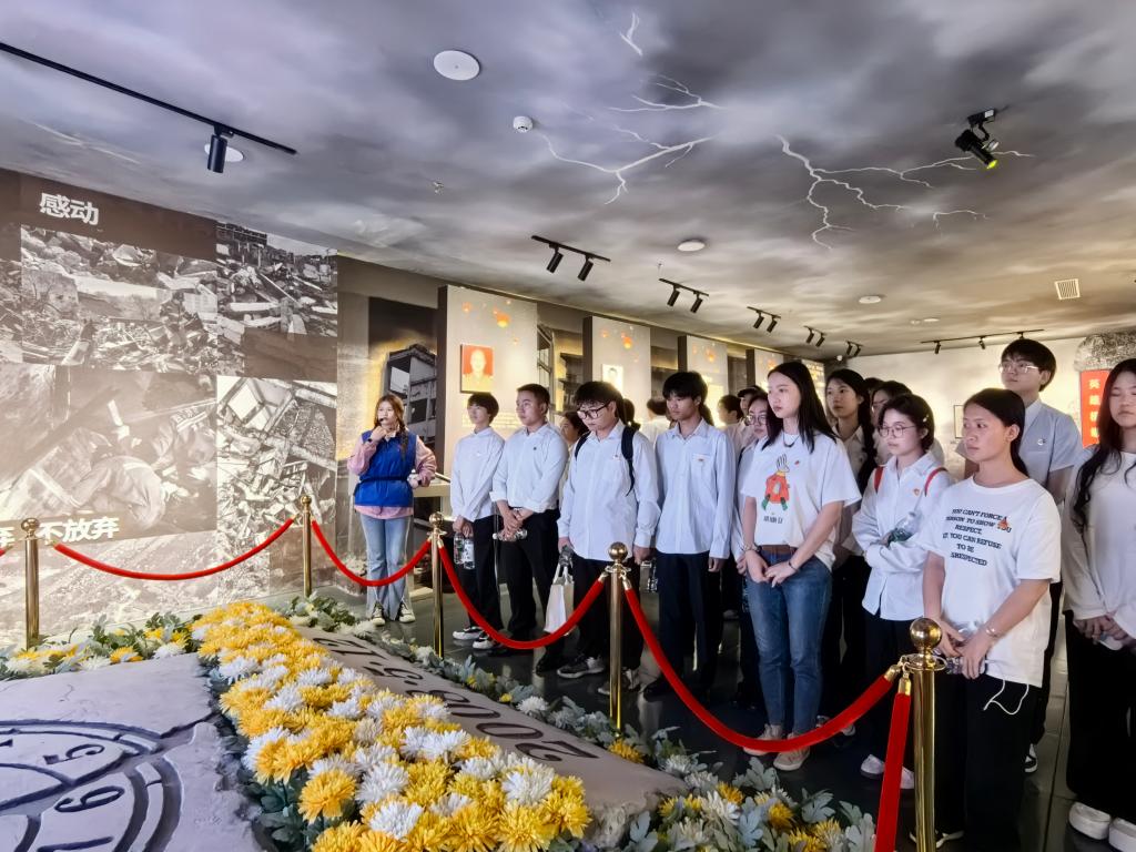 随后,青马班全体同学参观了成都市烈士纪念馆,大家跟随着历史的足迹,了解到许多烈士事迹。在参观过程中,讲解员为同学们讲解到,发生在抗美援朝上甘岭战役中左腿被炸断的薛志高与失明的战友王合良合作,由王合良背负薛志高,向敌人发起最后的冲锋,最后在冲锋过程中壮烈牺牲的故事;讲解了曾任崇州市怀远中学一年级教师吴忠红在汶川大地震发生时,学校教学楼轰然倒塌,吴忠红奋力把身旁学生推向楼道,自己却被废墟掩埋,献出了宝贵生命的故事;讲解了在凉山森林大火中,为扑灭火灾挺身而出、勇往直前的年轻消防战士的故事……通过一个个英烈、一桩桩事件,一件件展品,青马班全体同学在参观中参与了一次红色主题教育。