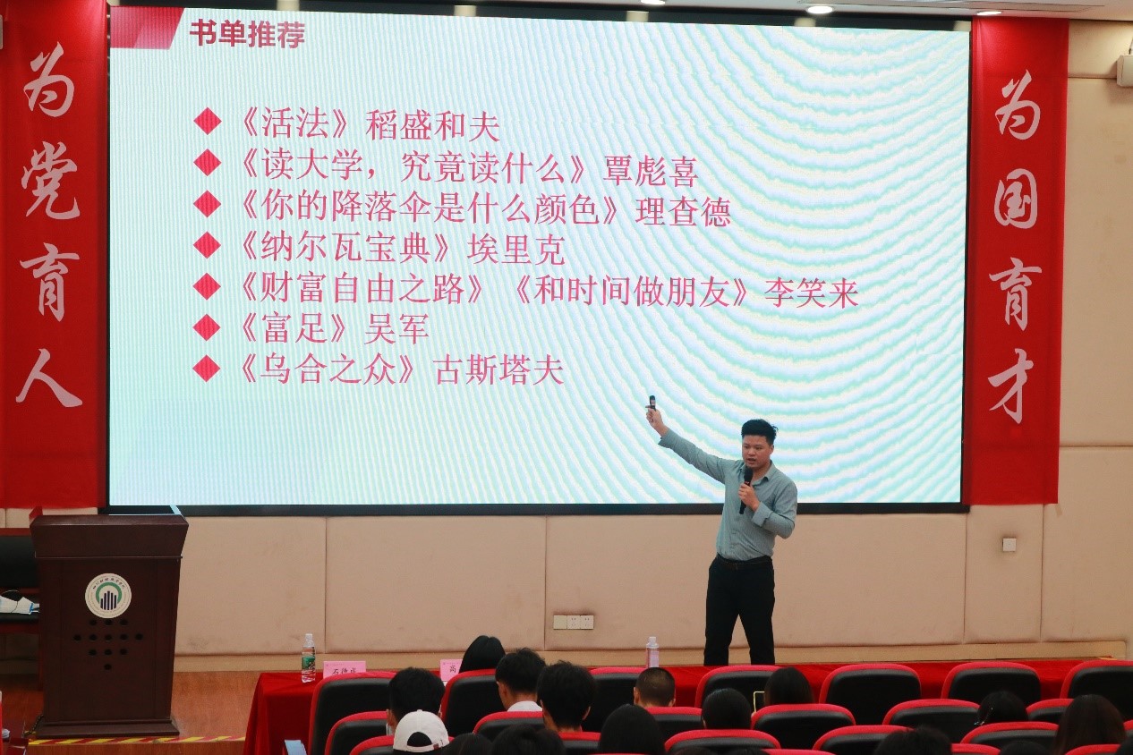 讲座伊始,同学们通过央视CCTV纪录片《匠心》中刀画专题视频纪录,了解了石老师的刀画求学经历以及创业过程遇到的困难艰辛。接着,石老师以《精英大学生的行动指南》为题,结合自身的经历经验,为同学们开始今天的授课。