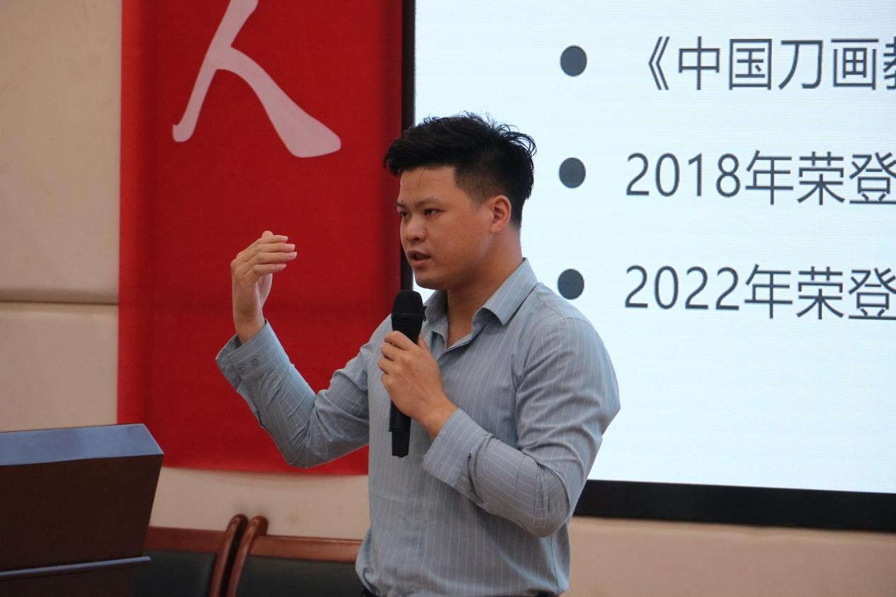 此次讲座团委特邀中国刀画第三代嫡系传承人石德成老师为同学们进行授课。石德成老师被誉为当代中国刀画“教育之父”,是央视力推80后“国之巨匠”,国家一级美术师,逐梦刀画教育集团创始人、总裁,中国宋记刀画艺术研究院院长,中央美院国际学院客座教授。