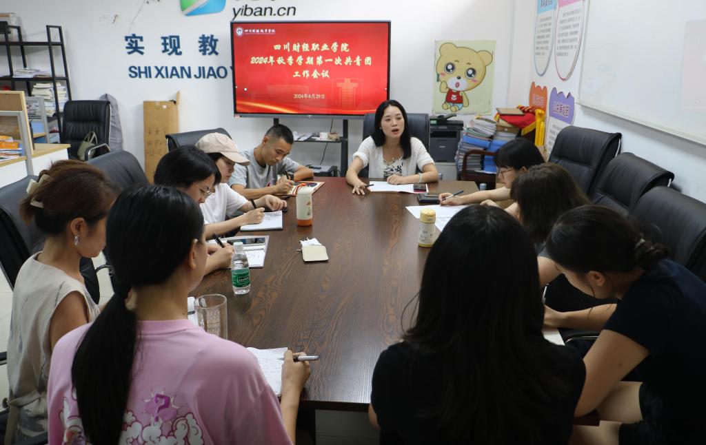 校团委魏雅婷、朱珠、张茂三名老师就各自负责的工作内容进行了相关发言:魏雅婷就扎实做好基础团务工作及各二级学院严格把关新生团员档案的审核进行要求与说明,确保信息准确无误;朱珠就迎新晚会的筹备情况进行了简要汇报,并表示将全力准备“交子”原创短剧的排练与演出;张茂围绕“三下乡”暑期社会实践活动、第二课堂新生培训、青马班课程等方面进行了发言。