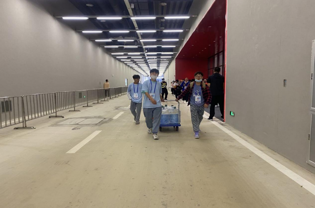 我的工作内容是保障观众的饮用水,听起来较为简单,但我们需要从体育馆下面的仓库中将饮用水搬出,换掉空桶然后运走。每天就需要在场馆来回搬运桶装水5、6次,单次运送10桶左右,正是每天的这几趟往返,让现场所有观众的饮水需求都得到了满足。