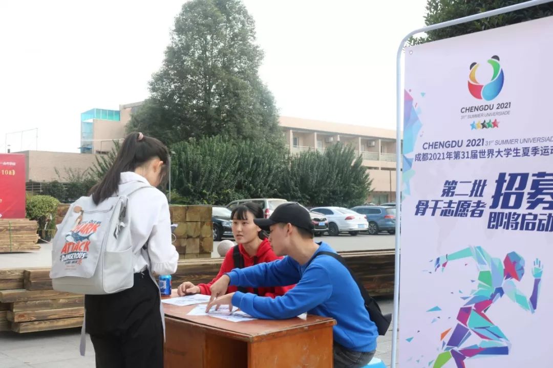 10月16日下午12:50朱珠老师在行政楼308对第31届世界大学生夏季运动会骨干志愿者招募进行面试海选。现场的同学在两分钟内分别对自己的班级姓名、特长或者掌握的技能以及是否在班级担任职位等做了简短的介绍,最后由朱珠老师宣布下一轮面试名单。下午3:40进行最后的志愿者选拔。经过重重筛选,最终有21位同学通过提问审核成功评选为成都2021年第31届世界大学生夏季运动会骨干志愿者。