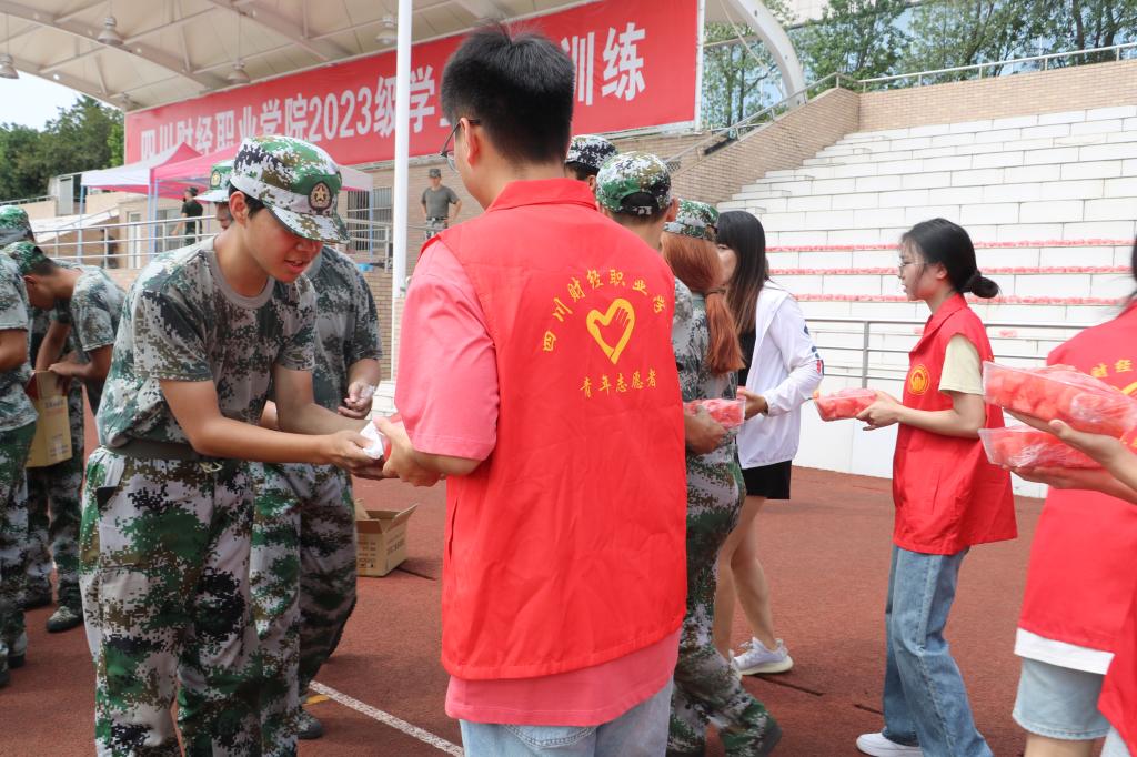 一块西瓜,虽然难以驱散酷暑的炎热,但却承载着学校对新生们的深切关怀。参训学生纷纷表示,感谢学校的殷殷关怀,将以更加饱满的热情和昂扬的斗志投入到未来的训练中,全力以赴地完成各项任务,积极展现川财学子朝气蓬勃的精神风貌。