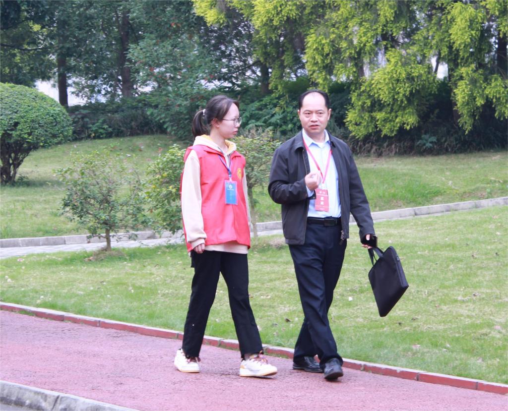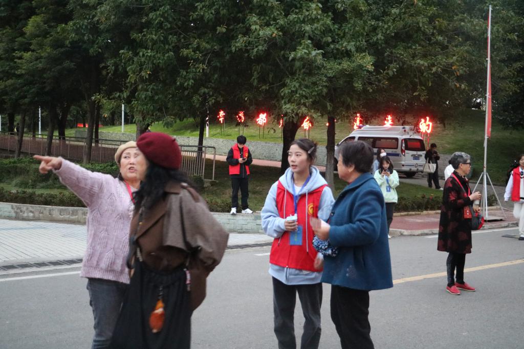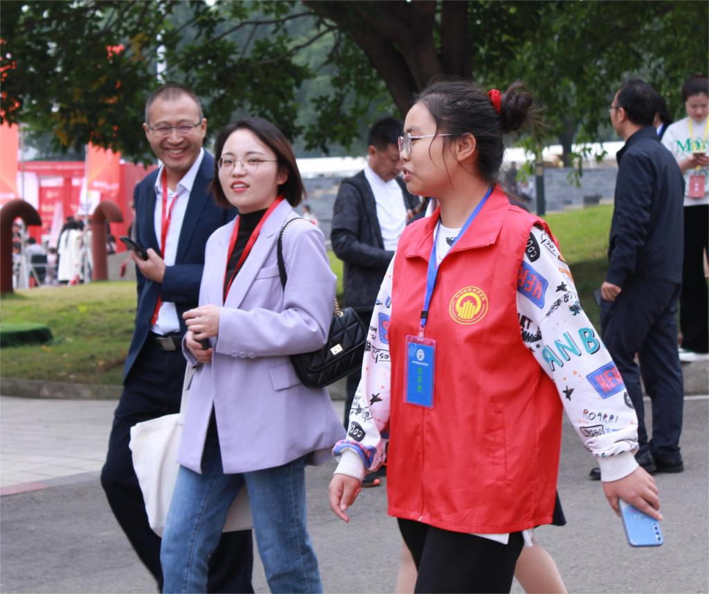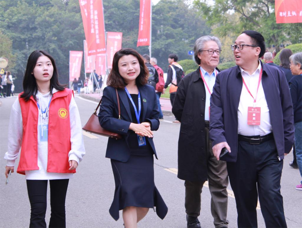 (志愿者们热情引领嘉宾、校友到主会场参加纪念大会)