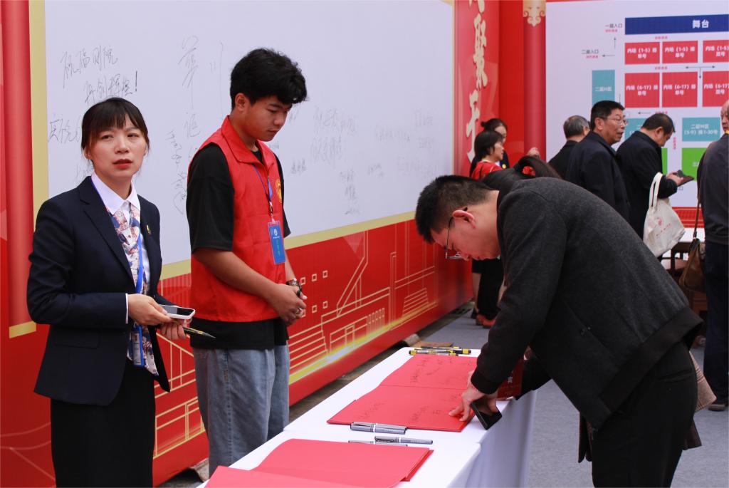 (志愿者指引校友签名,写下对母校的祝福)