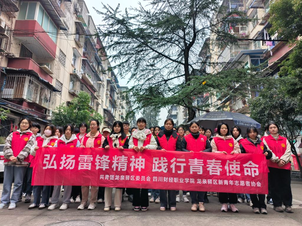 三月春风拂大地,雷锋精神代代传。为深入学习贯彻习近平总书记关于学雷锋志愿服务系列重要指示精神,深入践行社会主义核心价值观,大力弘扬“奉献、友爱、互助、进步”的志愿精神。3月3日,在成都市龙泉驿区新青年志愿者协会的召集下,我校团委青年志愿者协会组织开展了以“弘扬雷锋精神践行青春使命”为主题的青年志愿服务。