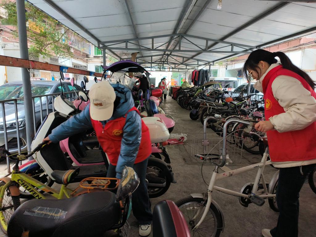志愿者们开始对老旧院落进行环境整治:将小区未规范停放的电瓶车、自行车停放到规范区域,对停车棚进行大规模的清洁与整理,将楼道中违规摆放的物品进行处理与清洁……