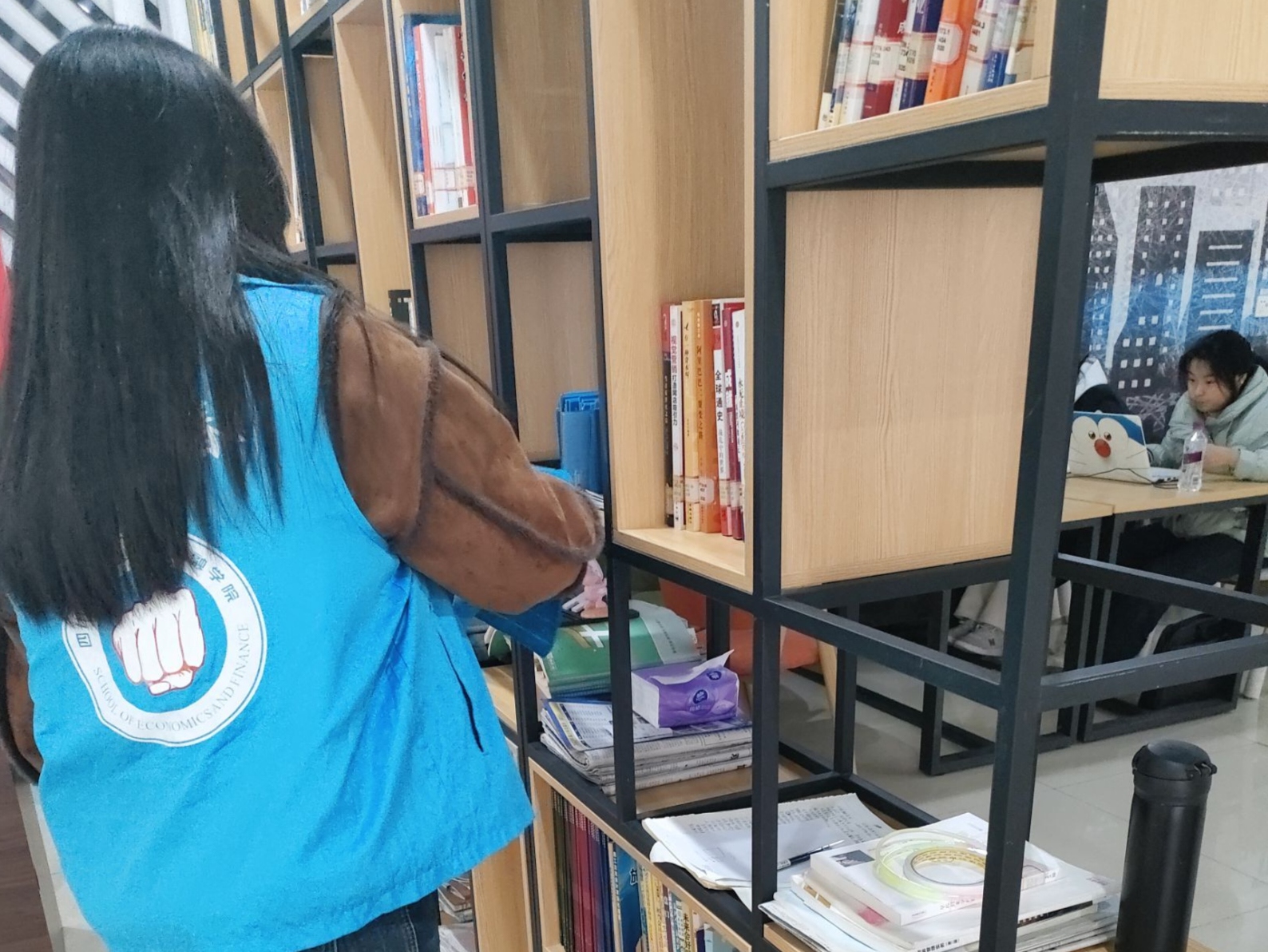 志愿者清理书架卫生