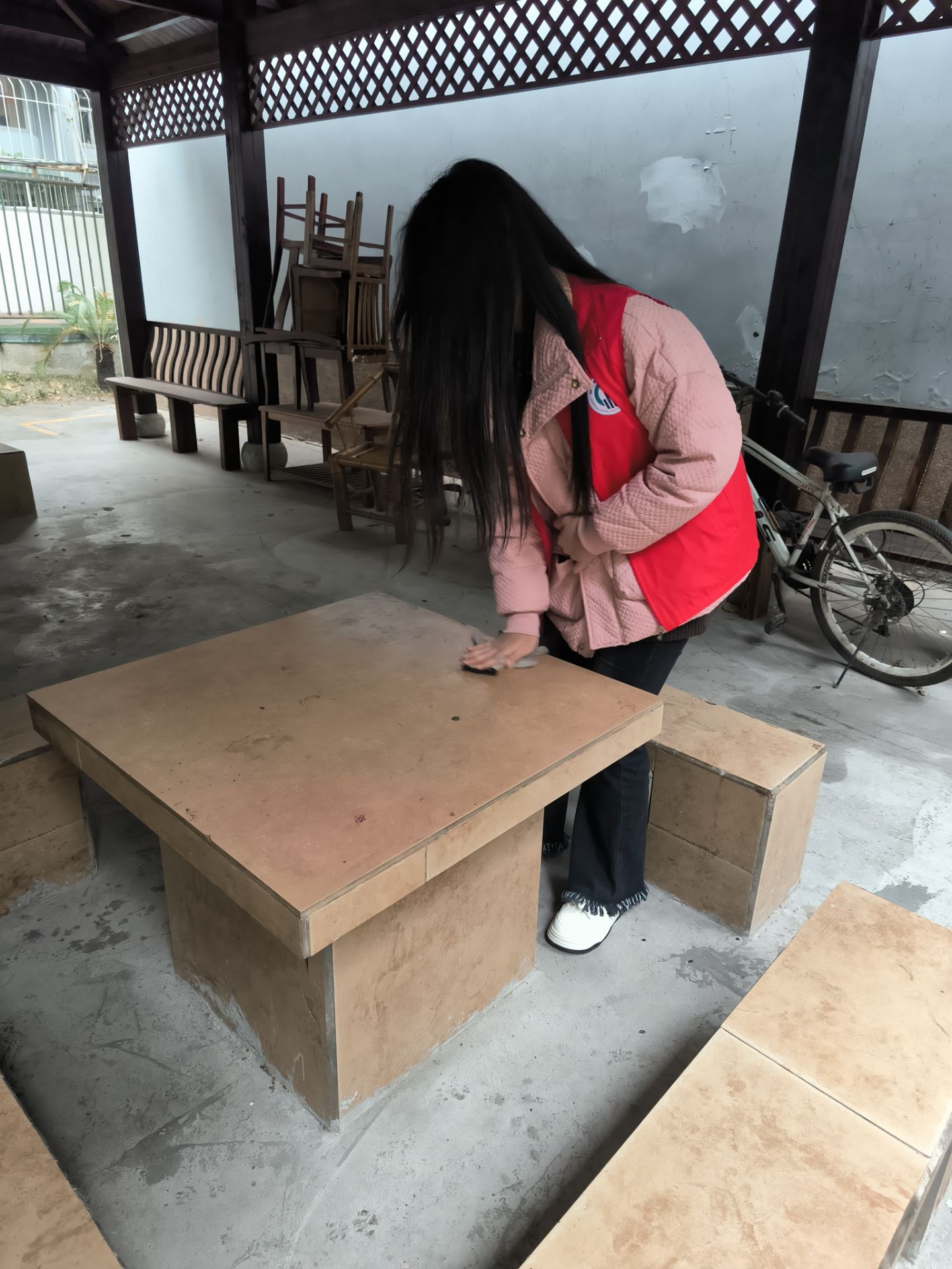志愿者清理桌面卫生