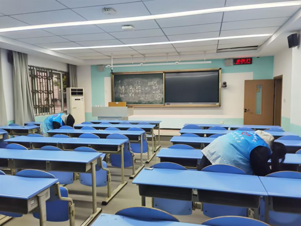 志愿者捡拾教室垃圾