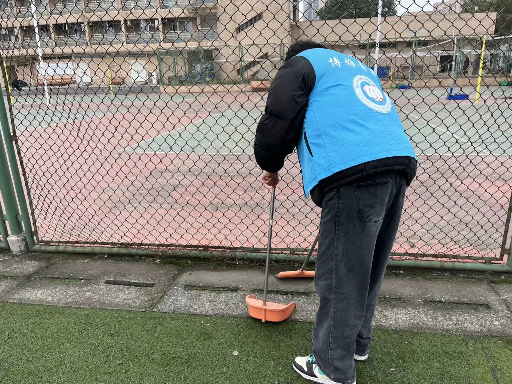 志愿者清扫操场卫生