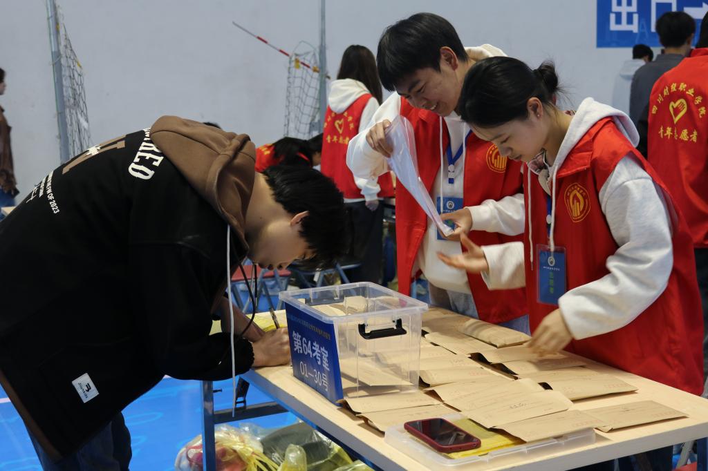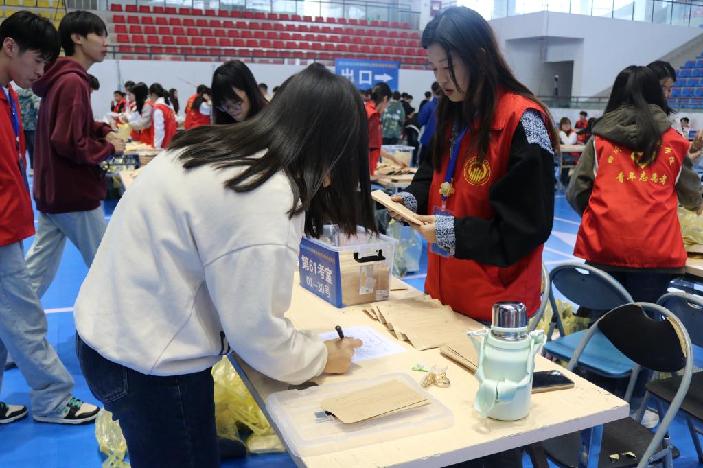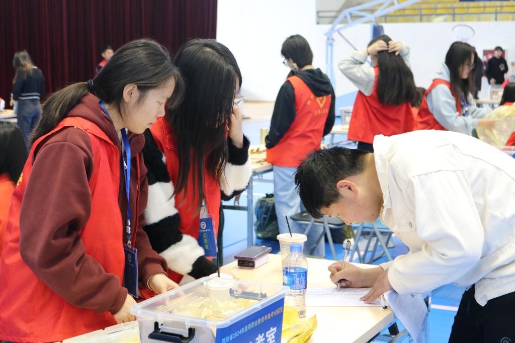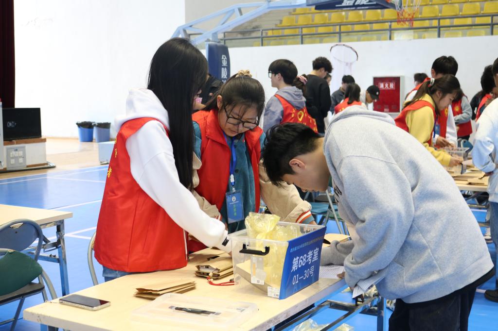 考试当天,志愿者们早早来到考场,开始了紧张而有序的工作。他们热情地为考生提供咨询服务,耐心解答各种问题;他们认真核对考生信息,确保每一个考生都能准点无误地进入考场;他们密切关注考场动态,及时处理各种突发情况。在志愿者们的辛勤付出下,考生进入考场的过程秩序井然,考试进行得十分顺利。