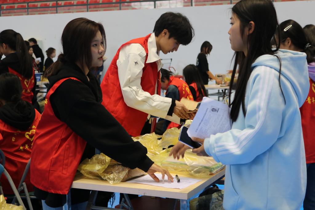 为保障单招考试顺利进行,为单招考生提供便利服务,3月24日校团委召集285名学生志愿者,分别于我校前门、体育馆、安检门、后门等地点开展志愿服务,为考生提供物品寄存、考场引导、考场安检等志愿服务。