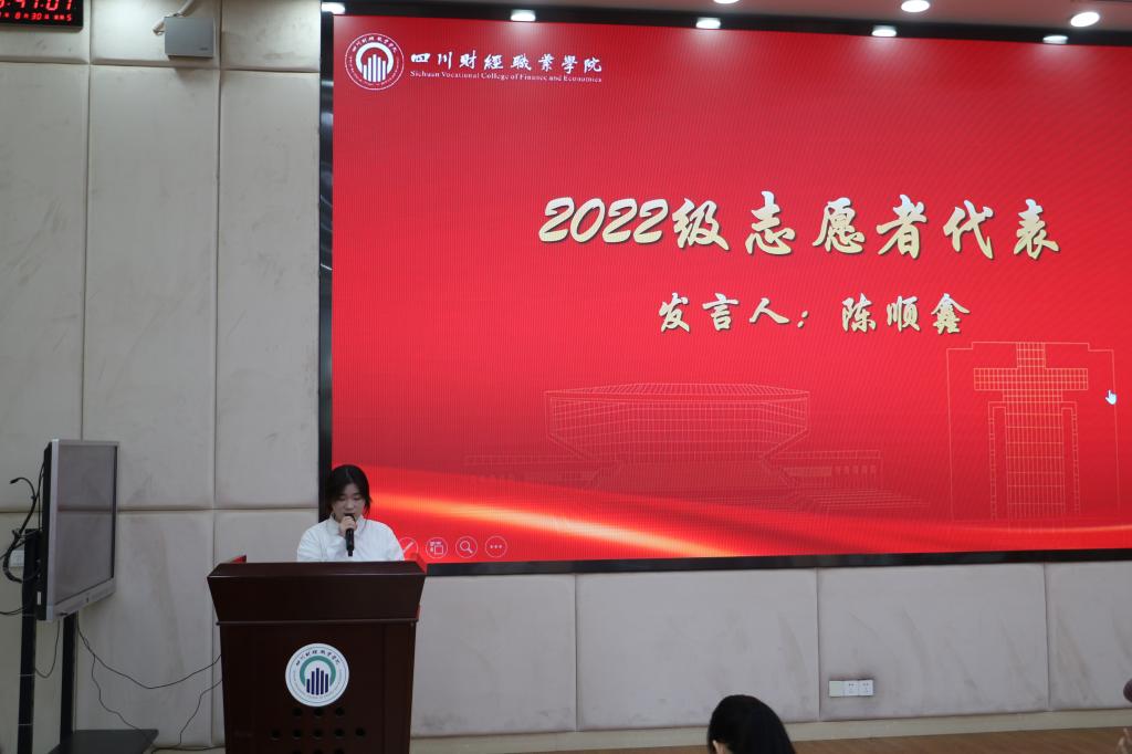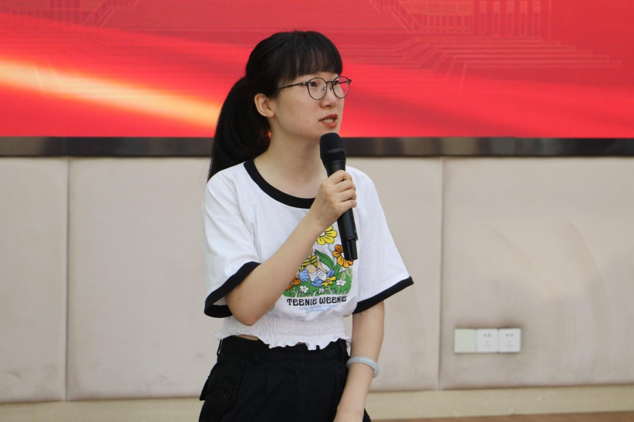 23级迎新志愿者代表刘玲妤同学上台发言,她表示很荣幸能够成为迎新志愿者的一员,并代表首次参与迎新工作的志愿者们表态:将尽自己最大的努力,做最充分的准备,以最积极的态度,投入到迎新工作中,确保每一项服务精准、高效、有序,为新生们留下一段难忘而美好的第一印象。