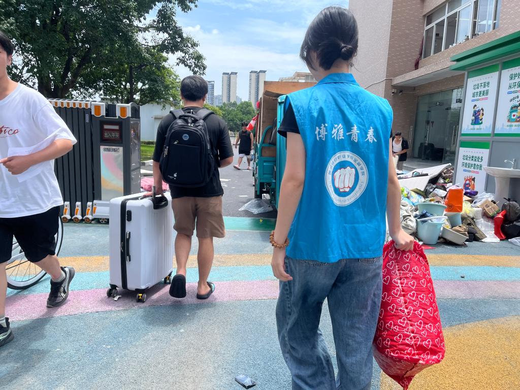 6月28日至30日,由金融学院博雅青春志愿服务队举办的“你迎我来,我送你走”的志愿服务活动在校园内顺利开展。志愿者们在宿舍楼下热情地接过毕业生手中沉重的行李搬运至指定地点。从帮助毕业生搬运行李、整理物品,到提供咨询,志愿者们的身影无处不在,他们用实际行动诠释着奉献与友爱的精神。