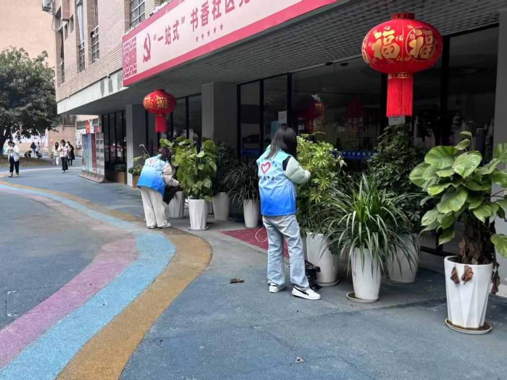 经过同学们一个下午的辛勤打扫,校园环境焕然一新。原本散落着烟头的小径变得干净整洁,书香社区前的绿植生机勃勃,公寓路面平坦安全。