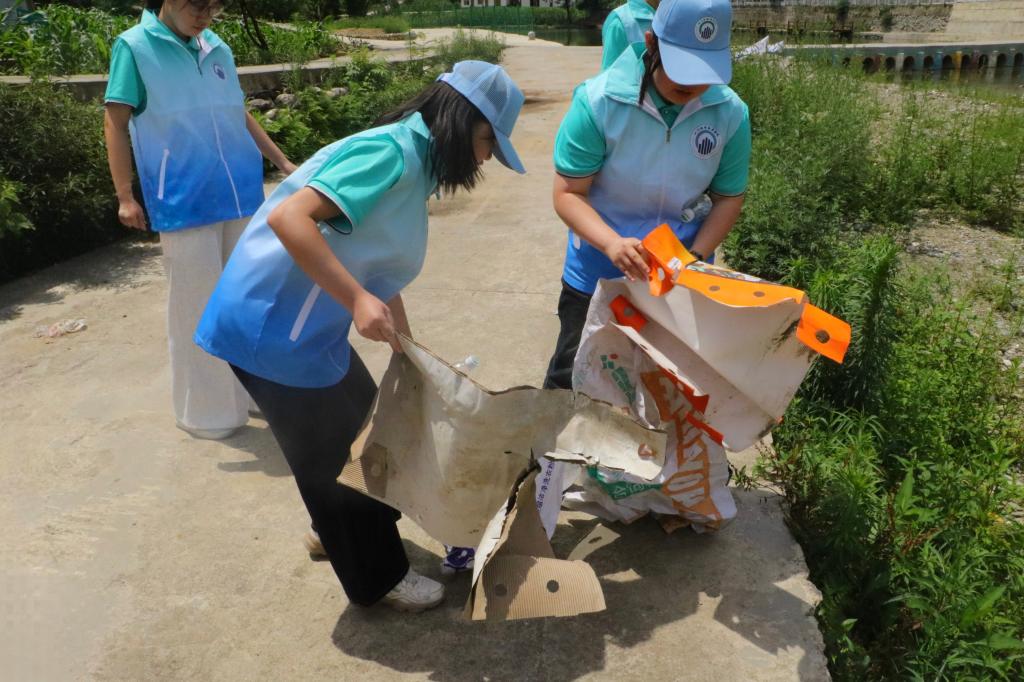 活动当日,实践团成员们统一整装,手持垃圾袋、夹子等工具,分组沿河道两岸展开地毯式清理。大家穿梭在草丛、河滩间,对塑料袋、饮料瓶、烟头等白色垃圾进行细致捡拾。面对隐蔽在石缝、枯枝下的垃圾,队员们不嫌脏、不畏难,相互配合、全力清理。经过数小时烈日下的辛勤劳动,河道周边环境焕然一新,共清理各类垃圾十余袋,以青春之力还河道一片洁净。