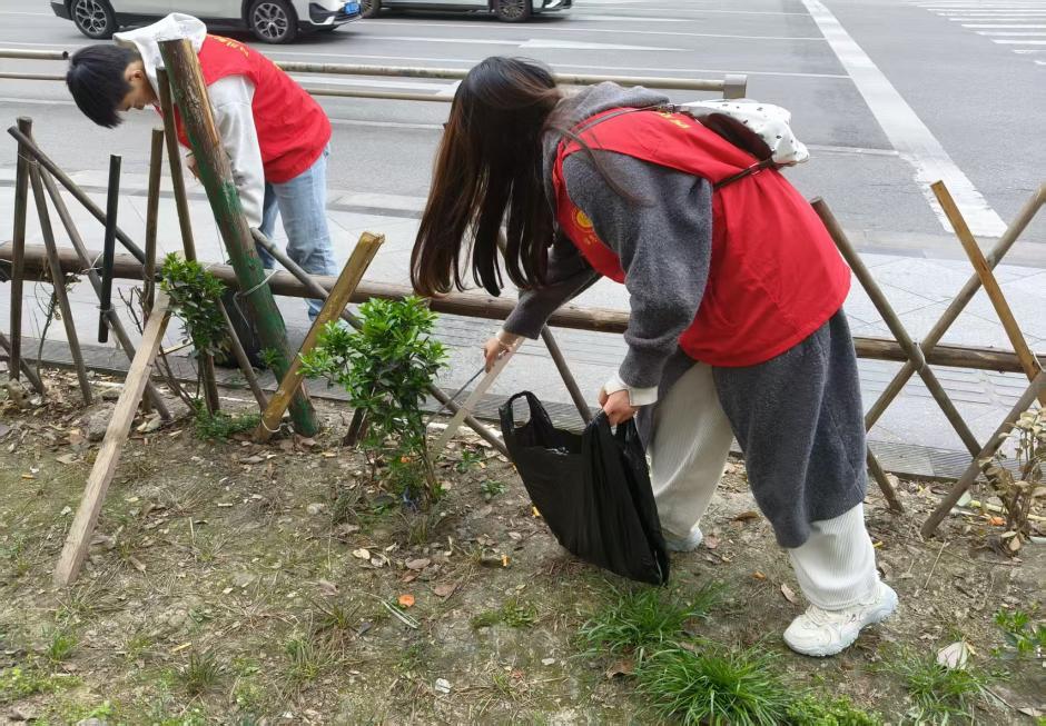 3月10日,信息学院青年志愿者身着红色志愿马甲,走进街道开展环境卫生整治志愿服务活动。志愿者们手持垃圾夹、垃圾袋,沿道路两侧绿化带、人行道等区域,认真捡拾烟头、纸屑、塑料瓶等各类垃圾,并对绿化带内的卫生死角进行集中清理。活动中,大家分工明确、配合有序,用实际行动清理环境杂物,有效改善了街道周边的环境卫生状况,为共建整洁优美的居住环境贡献青春力量。