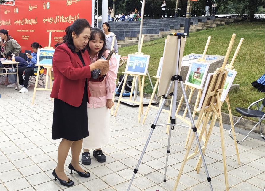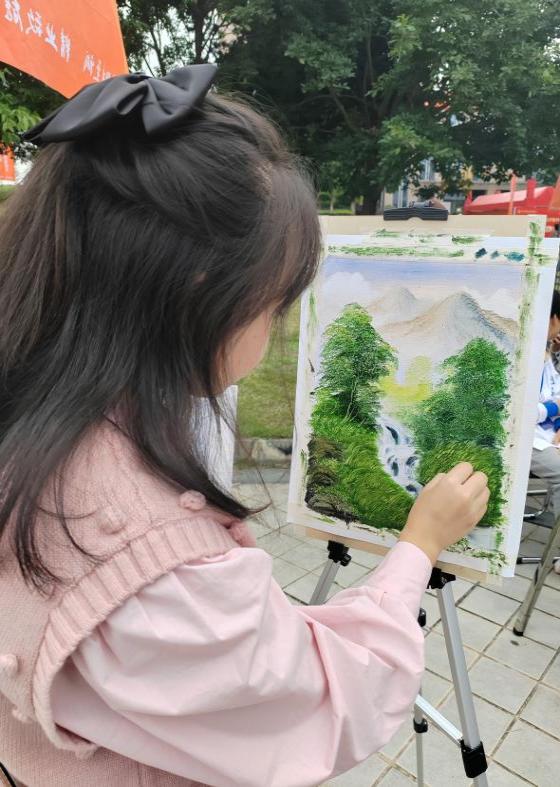 一张纸、一个画架、一双巧手、一份匠心,画出玲珑世界。协会成员现场作画,用自己的一笔一画表达新时代青年的担当与决心,描绘心中美好画卷。