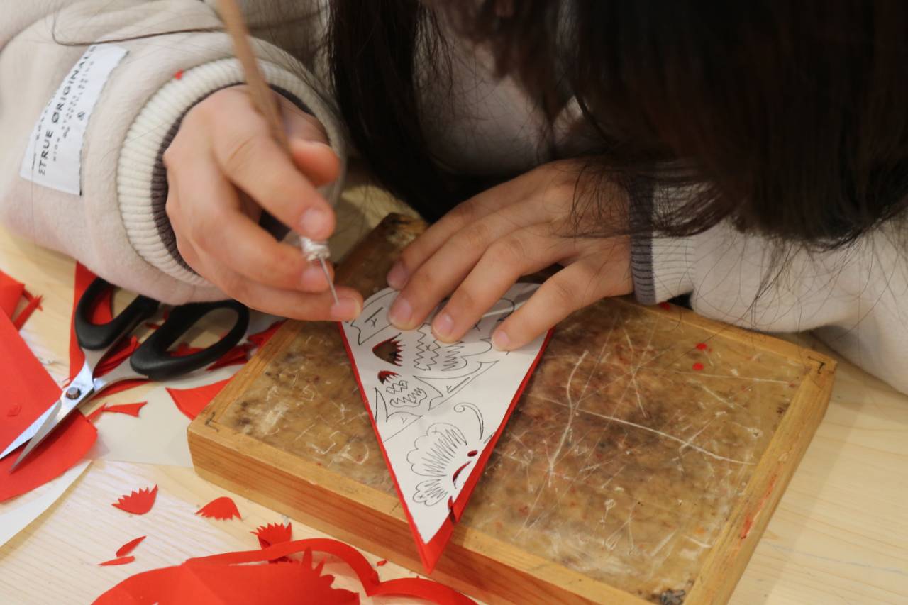 在高老师的悉心指导下,同学们纷纷动手尝试开始剪纸。他们拿起剪刀,小心翼翼地沿着画好的线条剪下,不一会儿,一个个生动可爱的剪纸作品便诞生了。