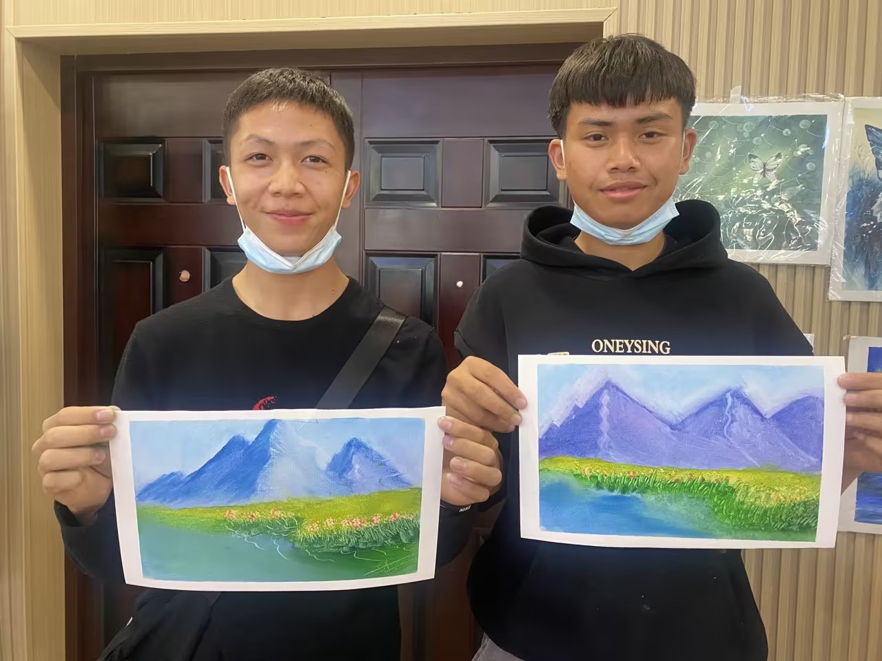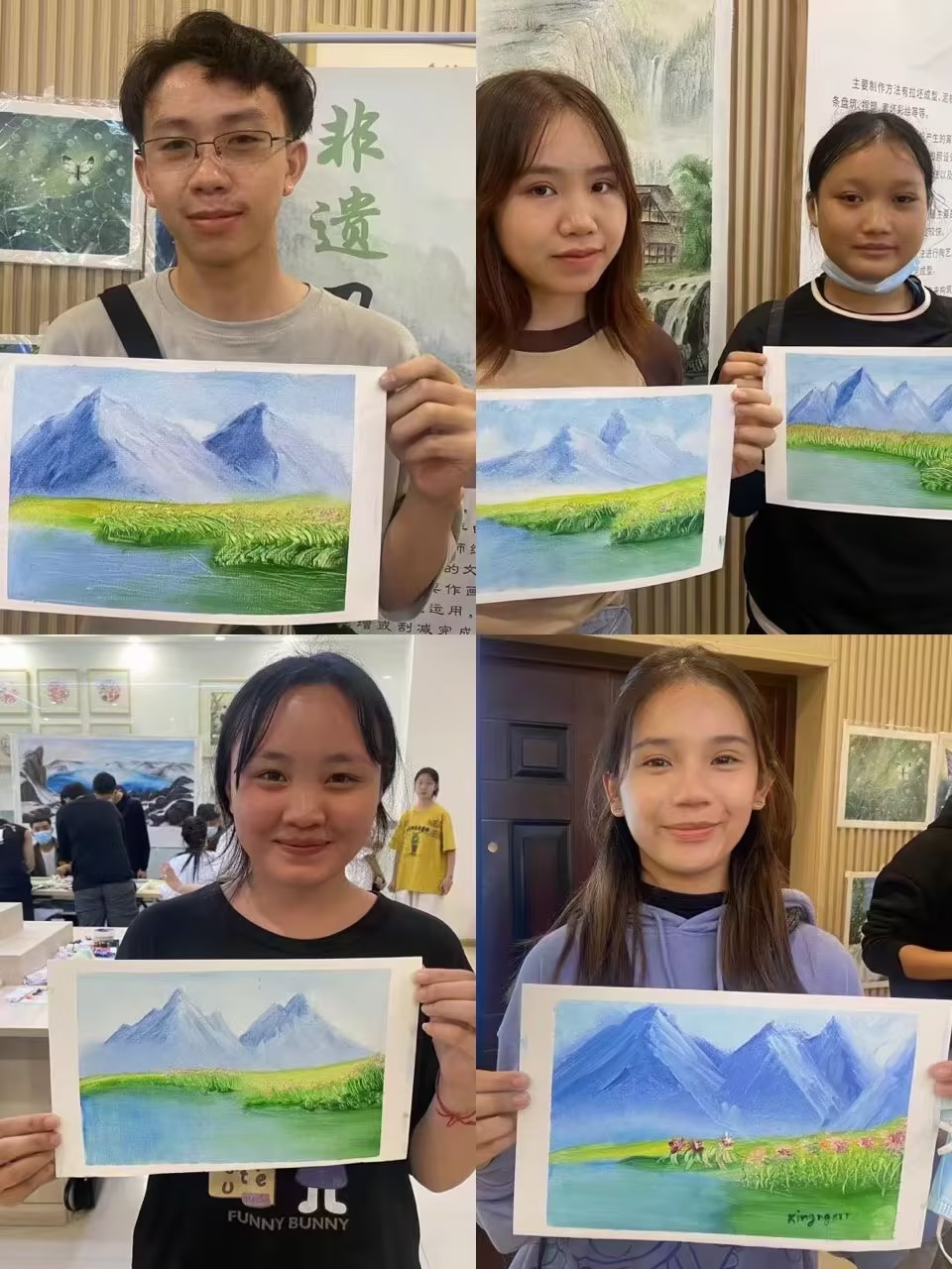 留学生们每个细节都听得十分认真,迫不及待开始创作。最终,在老师与现场工作人员的帮助下,他们纷纷完成了属于自己的刀画作品,看着自己亲手创作出来的美丽画作,留学生们都感到十分的开心与激动。